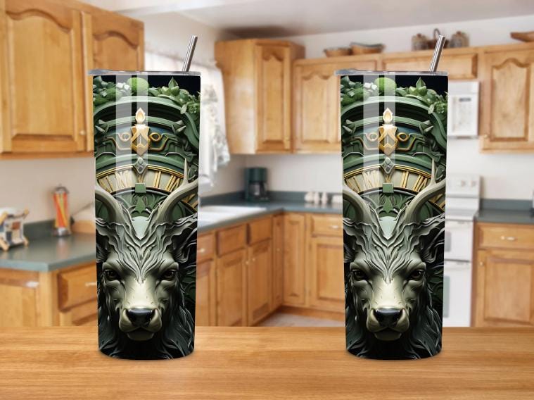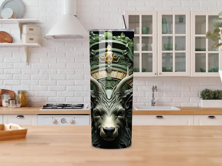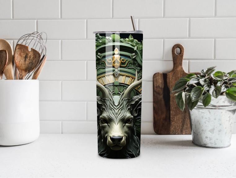 Make a bold statement with this powerful Stag Deer 20oz Tumbler, featuring a majestic deer with antlers in a mystical forest design with green and gold accents. This tumbler blends fantasy, nature, and strength into a truly unique drinkware piece.