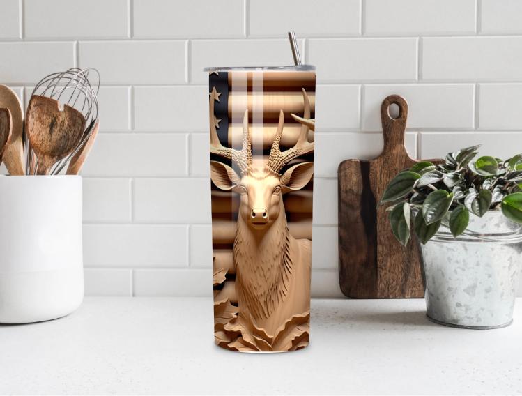 Show your American pride and love for the outdoors with this bold American Deer 20oz Tumbler, featuring a majestic buck with a rustic USA flag background. Perfect for hunters, outdoorsmen, and patriotic gift buyers.