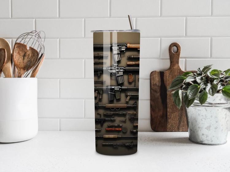 This tactical firearms tumbler makes a bold and unique gift for anyone who loves tactical style, military themes, and rugged designs.