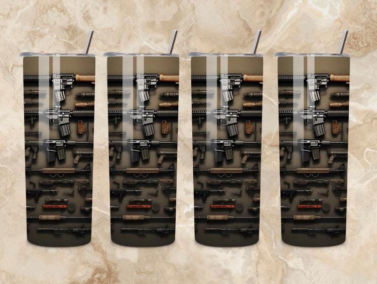 Tactical Guns Tumbler 20oz | Firearms Stainless Steel Cup | Military Gun Wall Design | 2A Patriotic Insulated Travel Mug