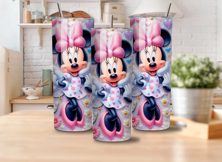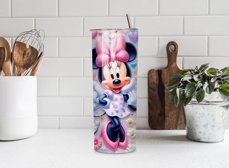 Bring joy and color to every sip with this adorable cartoon-style mouse character tumbler! This 20oz stainless steel tumbler features a vibrant, glittery design filled with hearts, flowers, and butterflies — perfect for kids, teens, and anyone who loves cute and colorful drinkware.