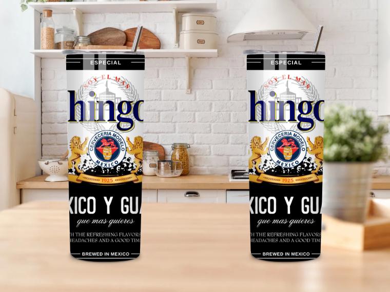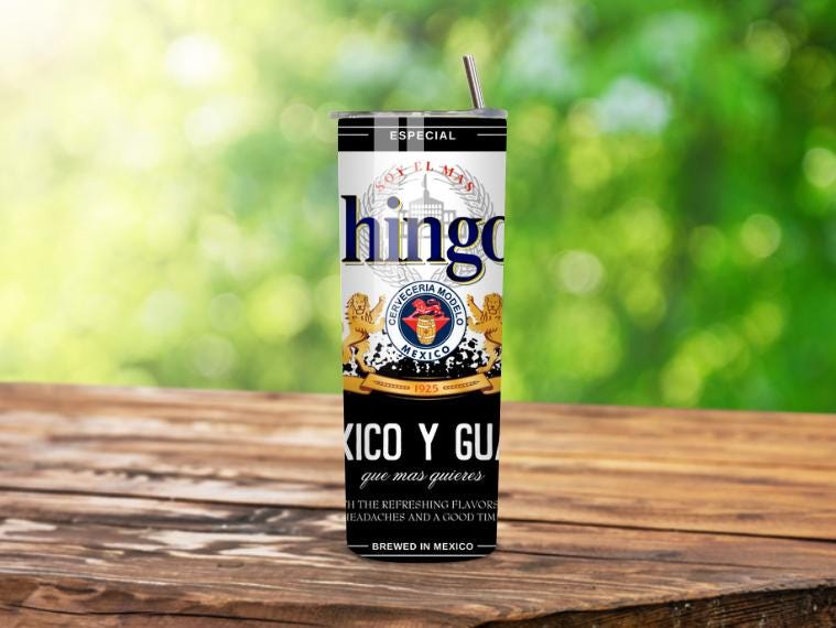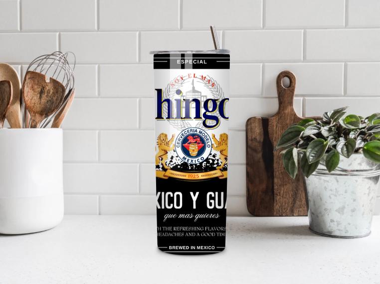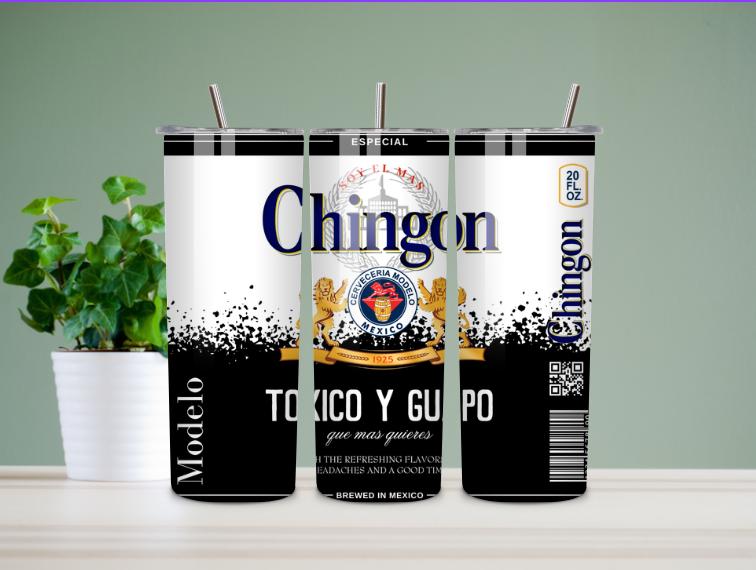 This 20oz stainless steel tumbler features a bold Mexican beer–style design with a fun “Chingon” theme, perfect for fiestas, parties, and anyone who loves Mexican culture and humor.