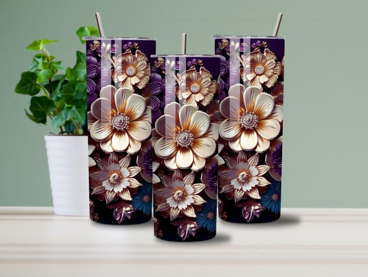 dark floral tumbler, luxury floral cup, elegant flower tumbler, floral tumbler for women, premium floral tumbler, gift for mom tumbler, bold floral tumbler, floral drinkware, sublimation tumbler