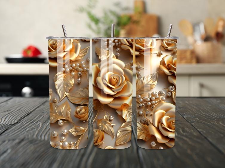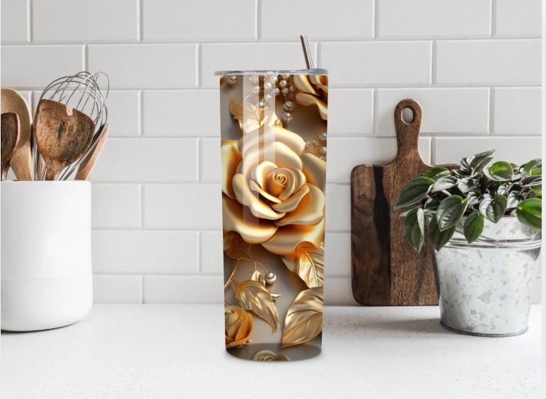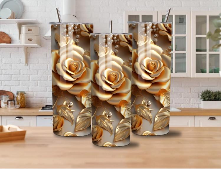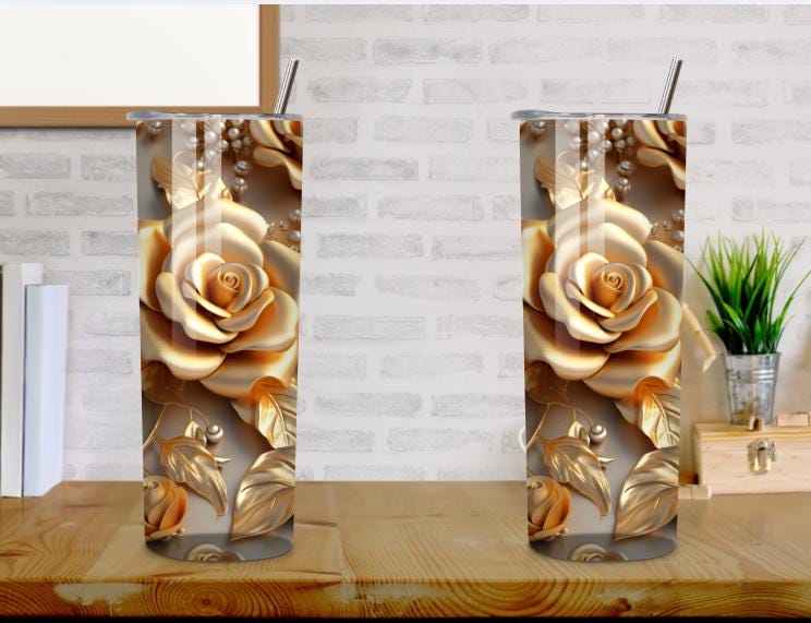 This luxury-inspired tumbler features beautiful golden roses, delicate pearls, and floral details that create a sophisticated and eye-catching design.