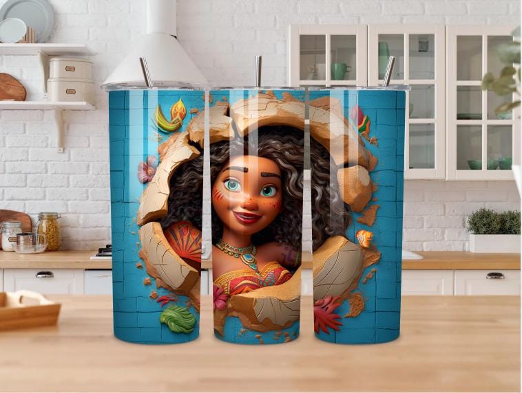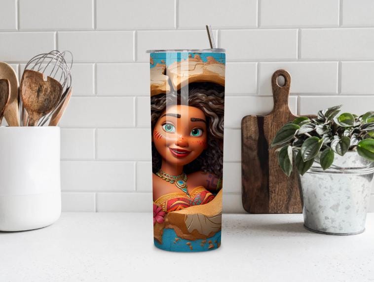 Bring island magic to your daily drinks with this stunning Moana-inspired 20 oz skinny tumbler! Featuring a beautiful 3D cracked wall effect design, this stainless steel travel cup showcases a vibrant tropical princess theme that’s perfect for Disney lovers, ocean fans, and anyone who loves colorful, magical drinkware.