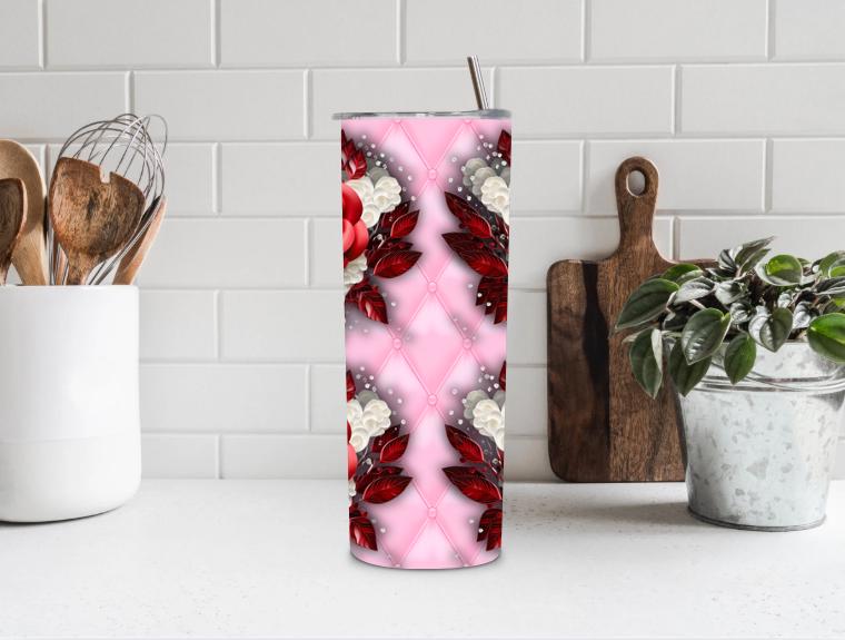 Add elegance and romance to your everyday routine with this beautiful 20oz floral tumbler, featuring vibrant red roses, soft pink tones, and delicate white flowers. Designed to stand out, this tumbler blends luxury, femininity, and functionality in one stunning piece.